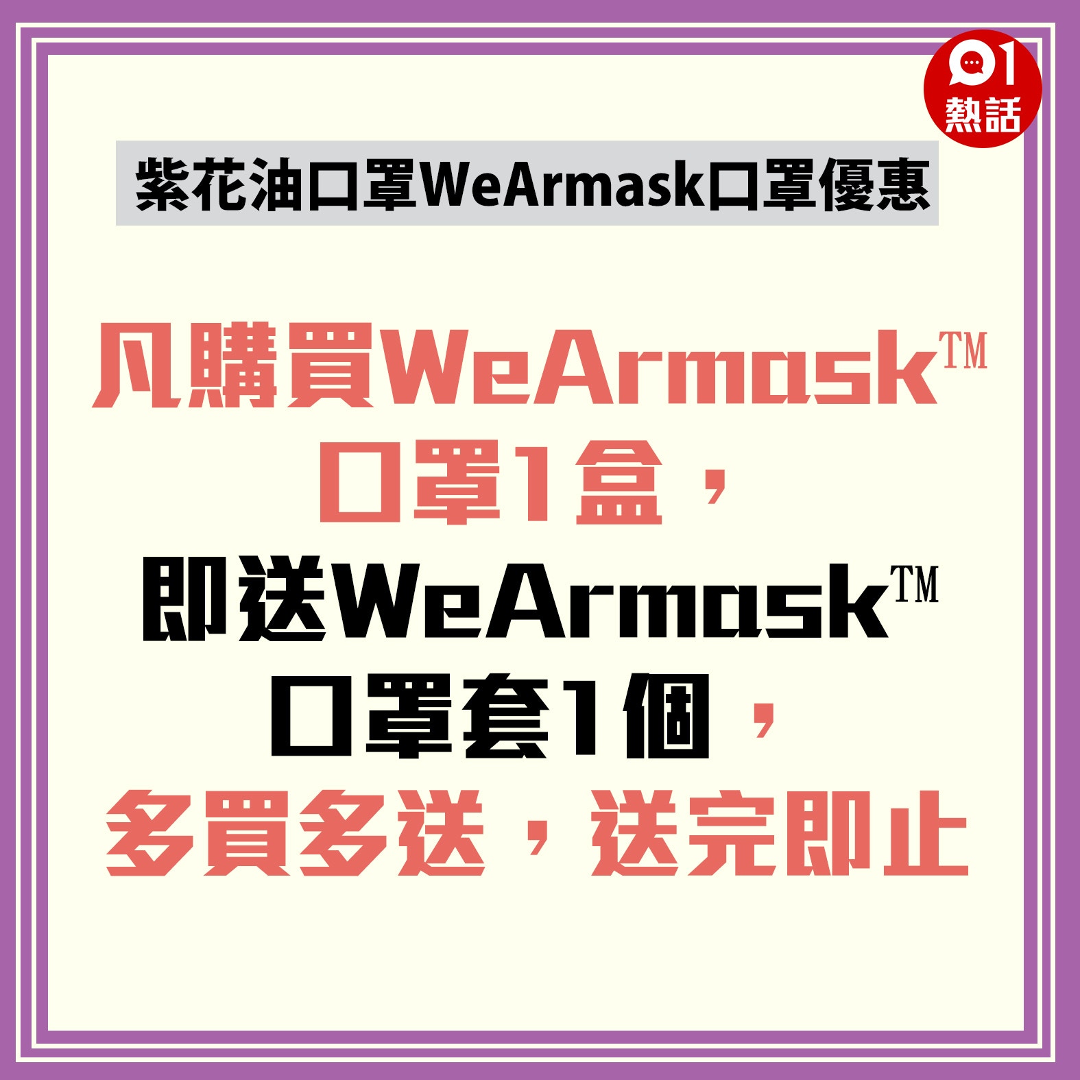 附直購連結 紫色超靚 紫花油推買一送一優惠 Level 3口罩售 59 30個 香港經濟日報 中小企 行內熱話 D1023